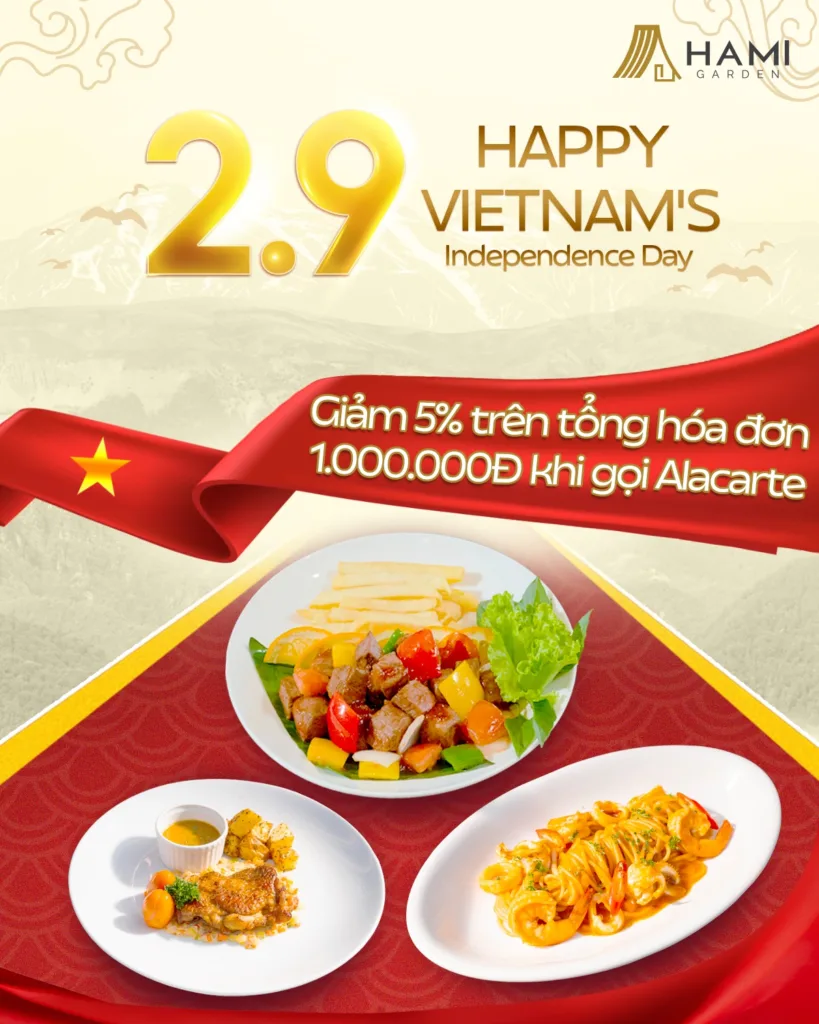 Đến với ốc đảo xanh – Hami Garden trong dịp Quốc Khánh này, bạn sẽ được trải nghiệm đa dạng các món ngon chuẩn vị Việt với ưu đãi đặc biệt khi gọi các món trong menu Alacarte. Hãy cùng người thân đắm chìm trong thế giới ẩm thực đậm chất Á Đông với hơn 60 món Alacarte độc quyền của Hami.
