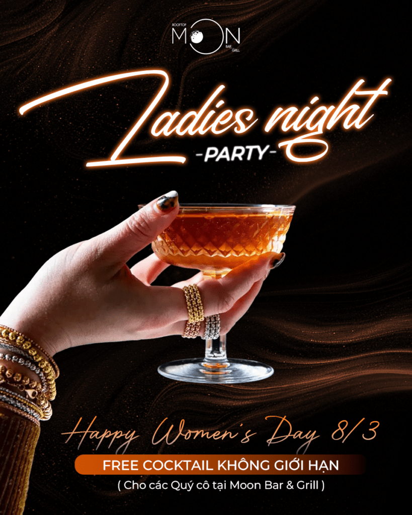 Cocktail gì chưa các người đẹp? “Ladies’ Night Party” sẽ là một đêm tuyệt vời nhất dành riêng cho một nửa sự xinh đẹp của thế giới tại Moon Bar & Grill, Rooftop Bar lãng mạn nhất phố núi!