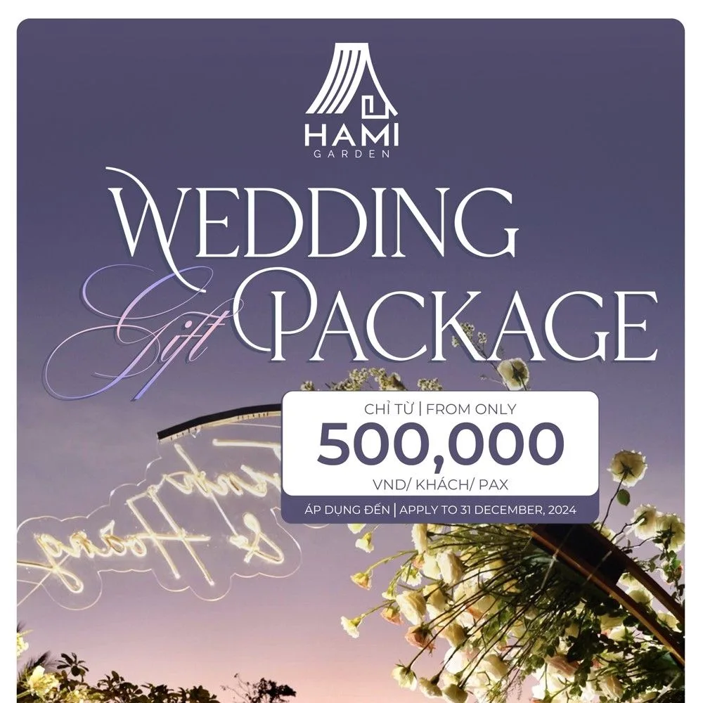 Say ‘I Do’ to our exclusive Wedding Gift Package! Starting from just 500,000 VND/Guest, every moment at Hami Garden is sacred and memorable for your special day, helping you mark a love story as beautiful as a fairy tale.